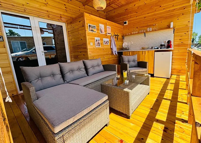 Cozyhut Бунгало Под Наемヴィラは,ブルガス空港から自動車で45分の宿泊施設です. 冷蔵庫,ガステ-ブル と基本の調理器具などの設備が整った器具でいっぱいの台所があります.